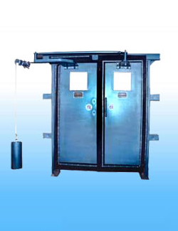 本手動無壓風門由門框、門扇、平衡機構及配重等部分組成。